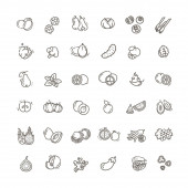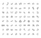 Zestaw szkiców ziaren zbóż, nasion, orzechów i ziół