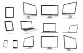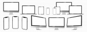Ekran urządzenia. Smartfon, tablet, laptop i monitor monoblokowy, z pustym ekranem dla Ciebie zaprojektować. PNG