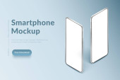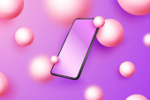 Zdjęcie "Realistyczna makieta smartfona. Telefon komórkowy 3d z czystym ekranem na kolorowym tle. Nowoczesna makieta szablonu telefonu komórkowego w abstrakcyjnej scenie z różowymi i niebieskimi sferami" może być wykorzystywane do celów osobistych i komercyjnych zgodnie z warunkami zakupionej licencji Royalty-free. Obraz jest dostępny do pobrania w jakości wysokiej rozdzielczości do 5760x3840.