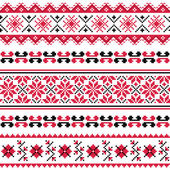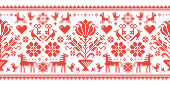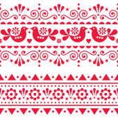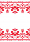 Polski wektor sztuki ludowej bezszwowy wzorzec retro haftu z kwiatami inspirowanymi wzorami haftów Lachy Sadeckie - ozdoba tekstylna lub tkaninowa