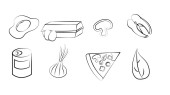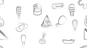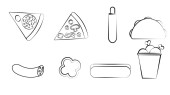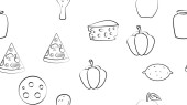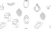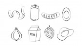 Zestaw różnorodnych artykułów spożywczych na białym tle.