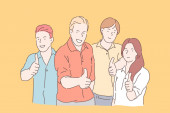 Zdjęcie "Para młodych mężczyzn i kobiet trzymających puste, białe papiery. Ręcznie rysowany styl wektor projekt ilustracje." może być wykorzystywane do celów osobistych i komercyjnych zgodnie z warunkami zakupionej licencji Royalty-free. Obraz jest dostępny do pobrania w jakości wysokiej rozdzielczości do 5760x3840.