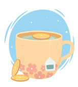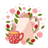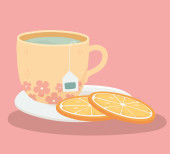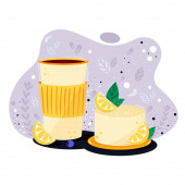 Pyszne ciasto cytrynowe / sernik. Kawa lub kubek herbaty. Koncepcja dla piekarni i menu kawiarni deign, baner, karta, promocja. Jasne kolory, realistyczna ilustracja.