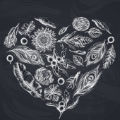 Serce kwiatowy wzór z kredą mak kwiat, gerbera, słonecznik, mleczko, dahlia, veronica