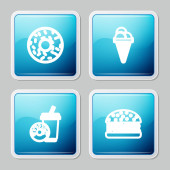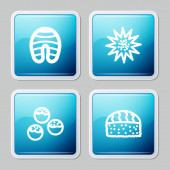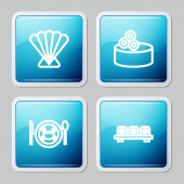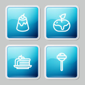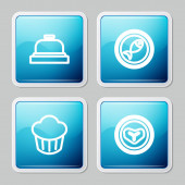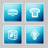 Ustaw linię Rolling pin na ciasto, Ciasto, Croissant i ziarna kawy ikona. Wektor