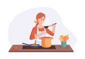 Zdjęcie "Internetowy samouczek wideo kucharza. Kucharz kucharz w samouczek wideo szkoły żywności. Lekcja gotowania online. Koncepcja pozostania w domu i kurs edukacyjny. Kulinarny przepis od ludzi do domowej roboty. Wektor." może być wykorzystywane do celów osobistych i komercyjnych zgodnie z warunkami zakupionej licencji Royalty-free. Obraz jest dostępny do pobrania w jakości wysokiej rozdzielczości do 5760x3840.