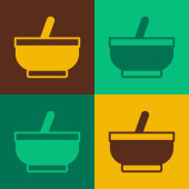 Zaprawa Pop Art i ikona tłuczka izolowane na tle koloru. Wektor