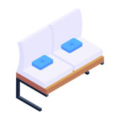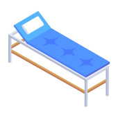 ikona łóżka szpitalnego. izometria symbolu wektora siedzenia pacjenta dla projektowania stron internetowych izolowanych na białym tle