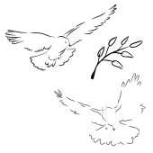Gołąb z gałązką oliwną ilustracja na abstrakcyjny zielony żółty kształt izolowane na białym tle