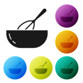 Czarna Czajka Kuchni i ikona miski izolowane na białym tle. Przybornik kuchenny, tłuczek do jajek. Znak sztućców. Symbol mieszanki żywności. Zestaw ikon kolorowe. Wektor.