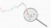 Z wykresem świecznik, wzrost, szkło powiększające stosowane do zapasów, FX i walut wirtualnych