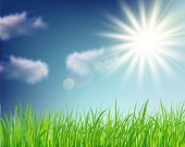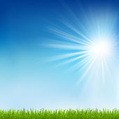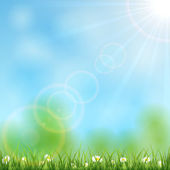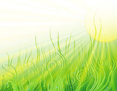 jasne, naturalne tło z słońce, świeże trawy i kropelki