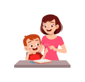 cute little girl study with mother and father at home together