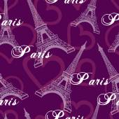 Płynny wzór. Wieża Eiffla z paryskim napisem. Nowoczesny fioletowy design dla dziewczynek. Abstrakcyjne serca i wirujący rysunek dłoni. Ilustracja wektora jest izolowana na tle