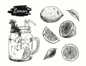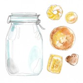 Słoik dżemu pomarańczowego. Wektorowy szkic jedzenia tuszem na białym tle.