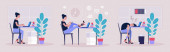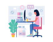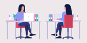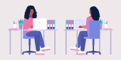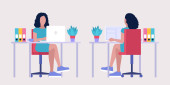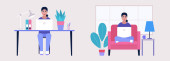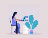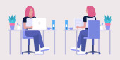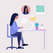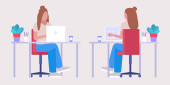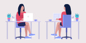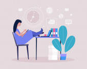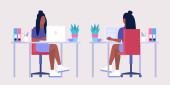 Zdjęcie "Ilustracja przepływu pracy. Różne poglądy. Młoda kobieta pracuje w domu lub biurze z laptopem. Wolny strzelec. Pracownik. Komunikacja w sieciach społecznościowych, poczta, spotkanie online, rozmowa wideo. Ilustracja wektora w płaskim stylu" może być wykorzystywane do celów osobistych i komercyjnych zgodnie z warunkami zakupionej licencji Royalty-free. Obraz jest dostępny do pobrania w jakości wysokiej rozdzielczości do 5760x3840.