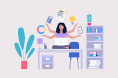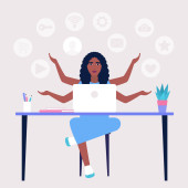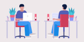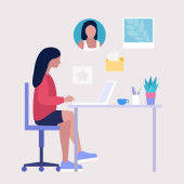Zdjęcie "Ilustracja przepływu pracy. Różne poglądy. Młoda kobieta pracuje w domu lub biurze z laptopem. Wolny strzelec. Pracownik. Komunikacja w sieciach społecznościowych, poczta, spotkanie online, rozmowa wideo. Ilustracja wektora w płaskim stylu" może być wykorzystywane do celów osobistych i komercyjnych zgodnie z warunkami zakupionej licencji Royalty-free. Obraz jest dostępny do pobrania w jakości wysokiej rozdzielczości do 5760x3840.