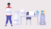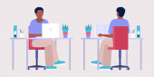 Zdjęcie "Ilustracja przepływu pracy. Różne poglądy. Młoda kobieta pracuje w domu lub biurze z laptopem. Wolny strzelec. Pracownik. Komunikacja w sieciach społecznościowych, poczta, spotkanie online, rozmowa wideo. Ilustracja wektora w płaskim stylu" może być wykorzystywane do celów osobistych i komercyjnych zgodnie z warunkami zakupionej licencji Royalty-free. Obraz jest dostępny do pobrania w jakości wysokiej rozdzielczości do 5760x3840.