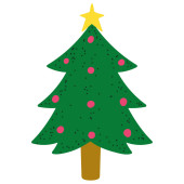 Ozdobiona choinka w ikonie puli. Ilustracja wektora.