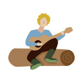 Zdjęcie "Wektor uroczy chłopiec gra na gitarze i śpiewa siedząc na pniu. Scena ogniska z uroczym dzieciakiem i żabą. Podróżnik odizolowany na białym tle. Obóz plenerowy lub letni ikona turystyczna." może być wykorzystywane do celów osobistych i komercyjnych zgodnie z warunkami zakupionej licencji Royalty-free. Obraz jest dostępny do pobrania w jakości wysokiej rozdzielczości do 5760x3840.