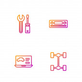 Linia montażowa Gumowe tłok, hydraulik, Przemysł metalowe rury i skrzynka narzędziowa. Ikony kolorów gradientu. Wektor