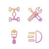 Zdjęcie "Linia montażowa Gumowe tłok, hydraulik, Przemysł metalowe rury i skrzynka narzędziowa. Ikony kolorów gradientu. Wektor" może być wykorzystywane do celów osobistych i komercyjnych zgodnie z warunkami zakupionej licencji Royalty-free. Obraz jest dostępny do pobrania w jakości wysokiej rozdzielczości do 5760x3840.