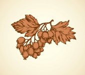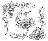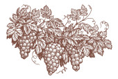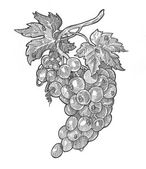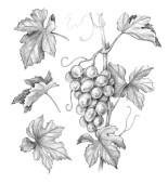 Ręczny rysunek gałęzi winorośli z liśćmi i gronem winogron