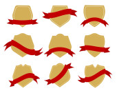 Etykieta czerwona ze złotymi wstążkami oferta cena