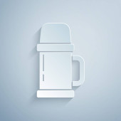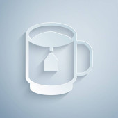 Plasterek papieru Filiżanka herbaty i ikona liści izolowane na szarym tle. Papier w stylu sztuki. Wektor