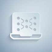 Papier wyciąć Abacus ikona izolowane na szarym tle. Tradycyjna rama licząca. Znak edukacji. Szkoła matematyczna. Papier w stylu sztuki. Wektor