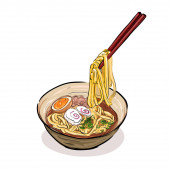 Zdjęcie "Wektor ilustracja pyszne japoński makaron ramen na misce z vintage retro płaski komiks styl" może być wykorzystywane do celów osobistych i komercyjnych zgodnie z warunkami zakupionej licencji Royalty-free. Obraz jest dostępny do pobrania w jakości wysokiej rozdzielczości do 5760x3840.