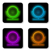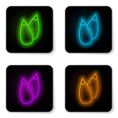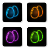 Świecące neon linii ikona jaj kurczaka izolowane na białym tle. Czarny kwadrat. Wektor