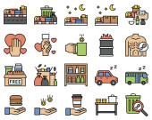 Supermarket i centrum handlowe związane ikona zestaw, fiiled stylu wektor ilustracji