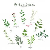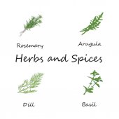 Rysunek ziół i przypraw zestaw. Szkic naturalnych przypraw i kocich ziół. Botaniczne ilustracje roślin aromatycznych.