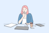 Praca, edukacja, wolny strzelec. Happy businesswoman lub dziewczyna pracuje na laptopie w biurze.