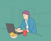 Zdjęcie "Zarządzanie czasem, koncepcja biznesu. młody szczęśliwy człowiek menedżer, chłopiec freelancer postać pracuje na laptopie." może być wykorzystywane do celów osobistych i komercyjnych zgodnie z warunkami zakupionej licencji Royalty-free. Obraz jest dostępny do pobrania w jakości wysokiej rozdzielczości do 5760x3840.
