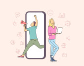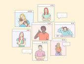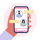Online communication, social media or network concept. Man, woman couple chatting, Messaging using chat app or social network.