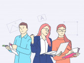 Zdjęcie "Creative Professions concept. Male designer, illustrator or freelance worker immersed in the creative process. Flat vector illustration. " może być wykorzystywane do celów osobistych i komercyjnych zgodnie z warunkami zakupionej licencji Royalty-free. Obraz jest dostępny do pobrania w jakości wysokiej rozdzielczości do 5760x3840.