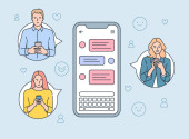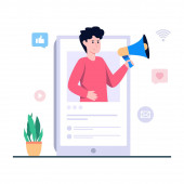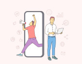 Mobile marketing and digital marketing concept. hand holding megaphone coming out from smartphone.