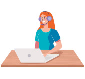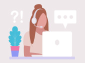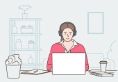 Wolny strzelec, zdalna praca i koncepcja pracy.Kobieta postać pracuje z laptopem i smartfonem przy biurku z powiadomieniami.