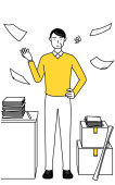 Dokument, biznes, księgowość, koncepcja wyszukiwania.Młody uśmiechnięty mężczyzna z dokumentami gotowy do pracy.