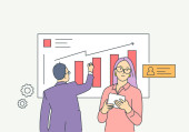 Koncepcja analizy danych. Ludzie partnerzy biznesowi pracownicy analizują dane finansowe i statystyki informacji marketingowych. Ilustracja wektora płaskiego