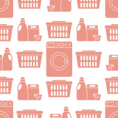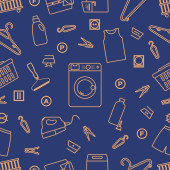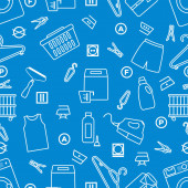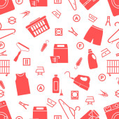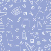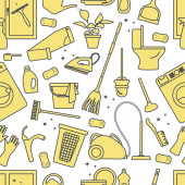 Wektor Bezszwowy wzór Ilustracja Czyszczenie Pokojówka Pralka Naczynia Detergenty Żelazko Odkurzacz Profesjonalne usługi higieniczne dla domowych prac domowych Projekt Drukuj