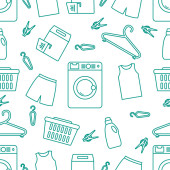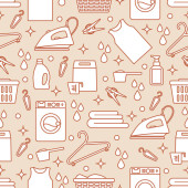 Zdjęcie "Wektor Płynny wzór Ilustracja Pralnia Pralka, kosz na pranie, detergenty, żelazko, szpilki do ubrań, wieszak, pościel. Zadania pralni dla gospodarstw domowych Projektowanie druku" może być wykorzystywane do celów osobistych i komercyjnych zgodnie z warunkami zakupionej licencji Royalty-free. Obraz jest dostępny do pobrania w jakości wysokiej rozdzielczości do 5760x3840.