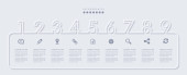 Wektor elegancki prosty wyrafinowany styl infografika projekt UI szablon 9 etykiet i ikon cyfr. Idealny do prezentacji koncepcji biznesowych baner układ przepływu pracy i schemat procesu.