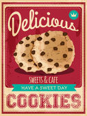 Plakat z ciastkami i ciasteczkami. Ilustracja wektora cookies. Projekt ulotki wektorowej ze słodkimi ciasteczkami czekoladowymi.