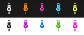 Zestaw Zipper ikona izolowana na czarno-białym tle. Wektor