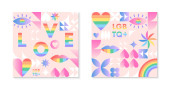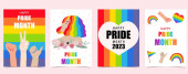 Miesiąc dumy LGBT w czerwcu plakaty i szablony stron internetowych. Lesbijska gejowska transseksualistka. Świętowaliśmy doroczny miesiąc dumy. Flagi LGBT, Tęcza i koncepcja miłości. Prawa człowieka i tolerancja. Plakat, karta