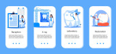 Neurologia opieki zdrowotnej, MRI wektor koncepcja wektor aplikacji zestaw szablonów. Anatomiczna nauka o mózgu i wyczuwa choroby. Encefalogram, wektor koncepcji EKG. Neurolog leczy mózg.