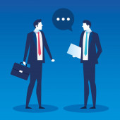 Zdjęcie "Dwóch biznesmenów wskazujących w przeciwnym kierunku. Kreatywna koncepcja komunikacji zespołowej lub dyskusji. Proste modny ładny wektor ilustracji. Nowoczesny abstrakcyjny płaski styl projektowania graficznego." może być wykorzystywane do celów osobistych i komercyjnych zgodnie z warunkami zakupionej licencji Royalty-free. Obraz jest dostępny do pobrania w jakości wysokiej rozdzielczości do 5760x3840.